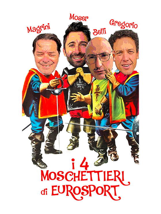 Con questa locandina dedicata ai suoi 4 Moschettieri, Eurosport celebra Magrini, Moser, Belli e GregorioCon questa locandina dedicata ai suoi 4 Moschettieri, Eurosport celebra Magrini, Moser, Belli e Gregorio