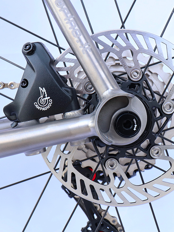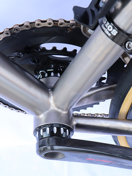 «Il modello Gios Titanio – spiega Marco Gios – nasce essenzialmente perché siamo amanti del metallo, fanatici dell’acciaio. Abbiamo esplorato anche il titanio con tutti quelli che sono i suoi pregi. In primis si riesce ad alleggerire il peso e sfruttare quella che è l’inattacabilità degli agenti atmosferici di questo materiale nobile. Per questo si lascia il telaio nudo e crudo in modo che non ci sia problemi.