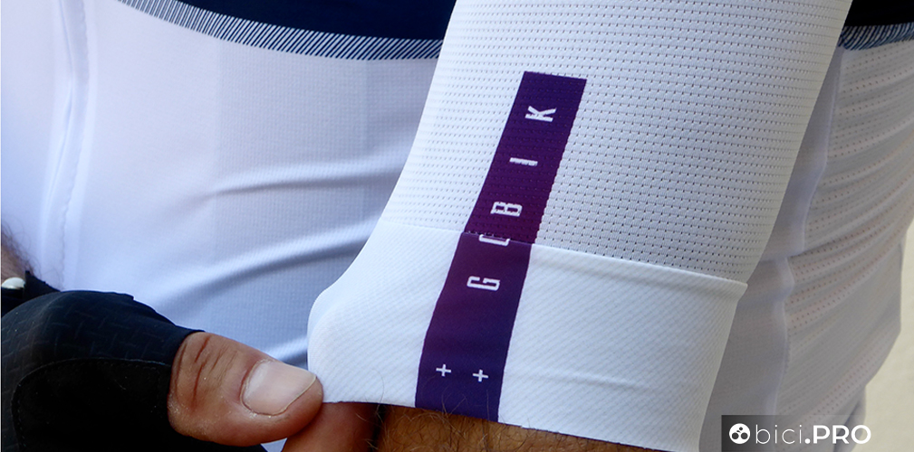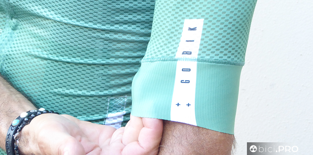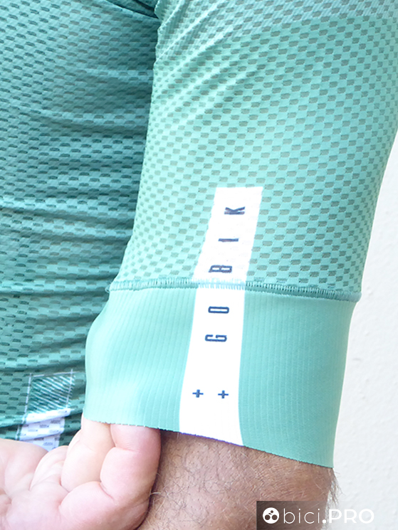 Il fondo delle maniche presenta una fascia elastica compatta, che stabilizza il capo, ma non costringe il braccio, il tutto senza inserti di silicone.