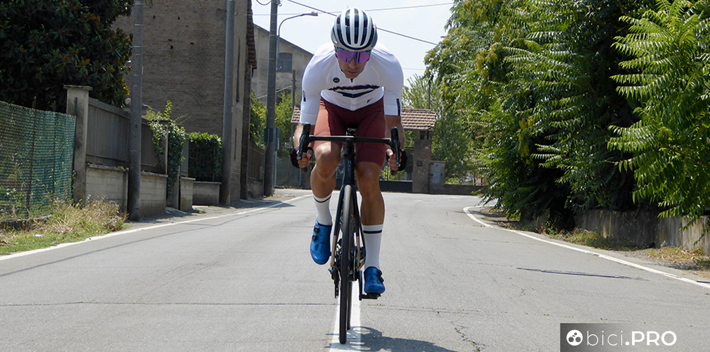 La shirt CX Pro 2.0 e il pantaloncino Abosulte Revolution sono i capi che abbiamo provato (anche) in Edizione Limitata Nove Colli. Entrambi, rispetto alla Carrera 2.0 e alla salopette Ultralite, hanno una struttura importante e un tessuto con una trama più fitta, pur dimostrando una traspirabilità di alto livello.
