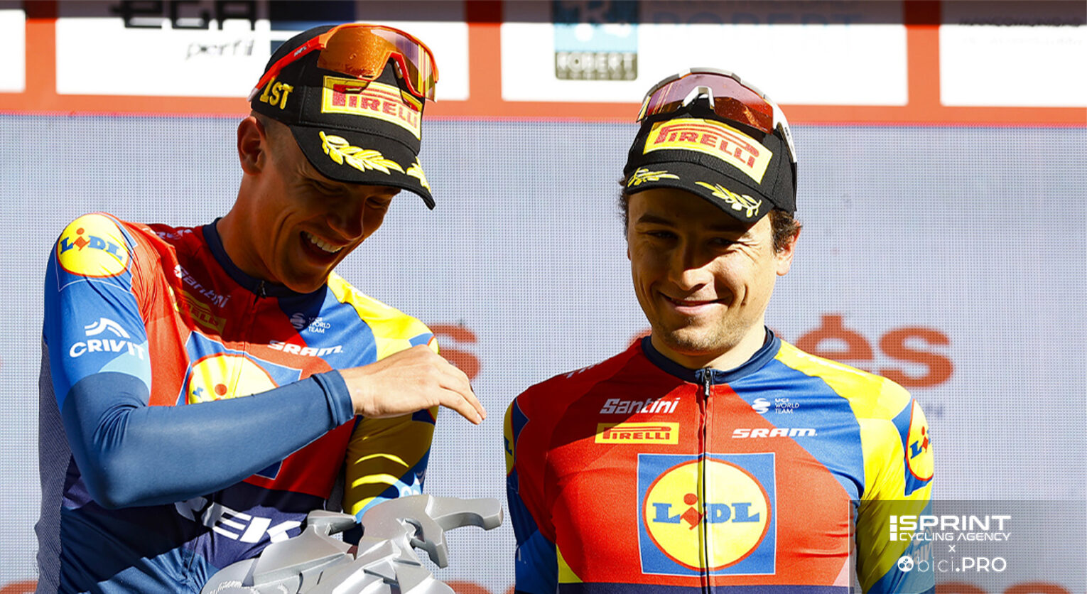 La cosa che ci ha fatto più piacere è che a Lizarra abbiamo visto concretizzato tutto il nostro lavoro e soprattutto i progetti che avevamo fatto alla vigilia. Eravamo d’accordo che sulla salita finale sarei stato io a impostare lo strappo più forte che potevo per selezionare il gruppo e raggiungere chi era davanti, poi verso la cima Thibau sarebbe partito e così è stato. Io però avevo ancora la gamba per tenere e chiudere su chi lo inseguiva in discesa, ho anche avuto la forza di fare la volata.