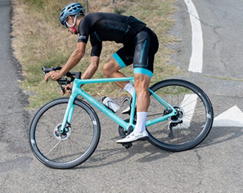 La Dolomia è performante, è corsaiola ed ha una propensione race di alto livello, ma non è estrema, fattore che aiuta (non poco) anche chi non è perfettamente allenato a stare tante ore in sella. La Dolomia non è una bici stancante ed esigente, anzi, talvolta asseconda il comportamento di chi la pedala.