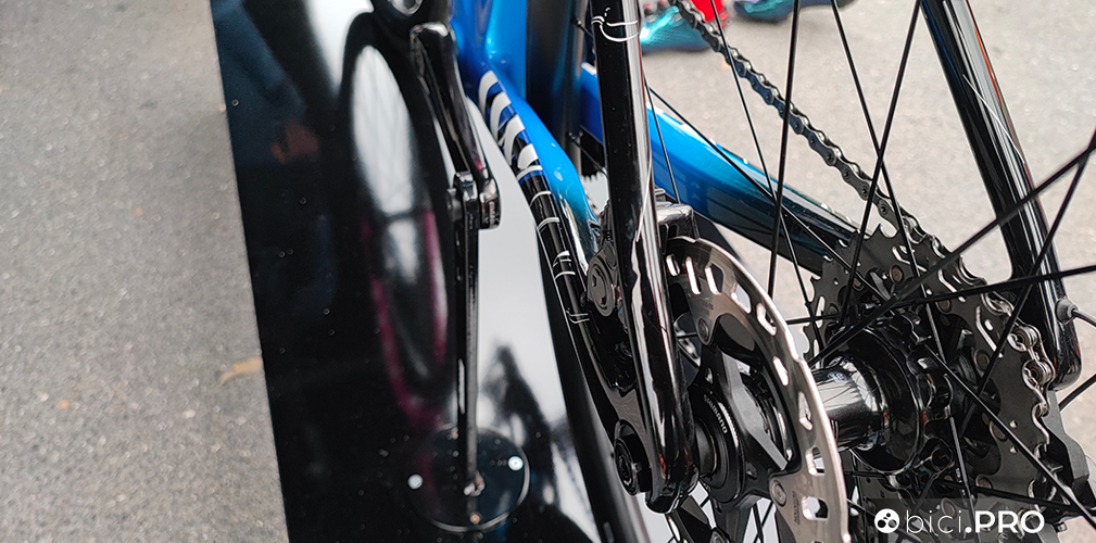 Ad esempio il magnete utilizzato come interfaccia per il power meter Shimano. Per la “nuova” SL10 proprio il magnete viene integrato direttamente nel fodero, dietro le corone, è comunque a vista, ma sostituisce la vite (usata proprio per alloggiare il magnete) che era presente anche sulla Anniversary e sulla SL9.