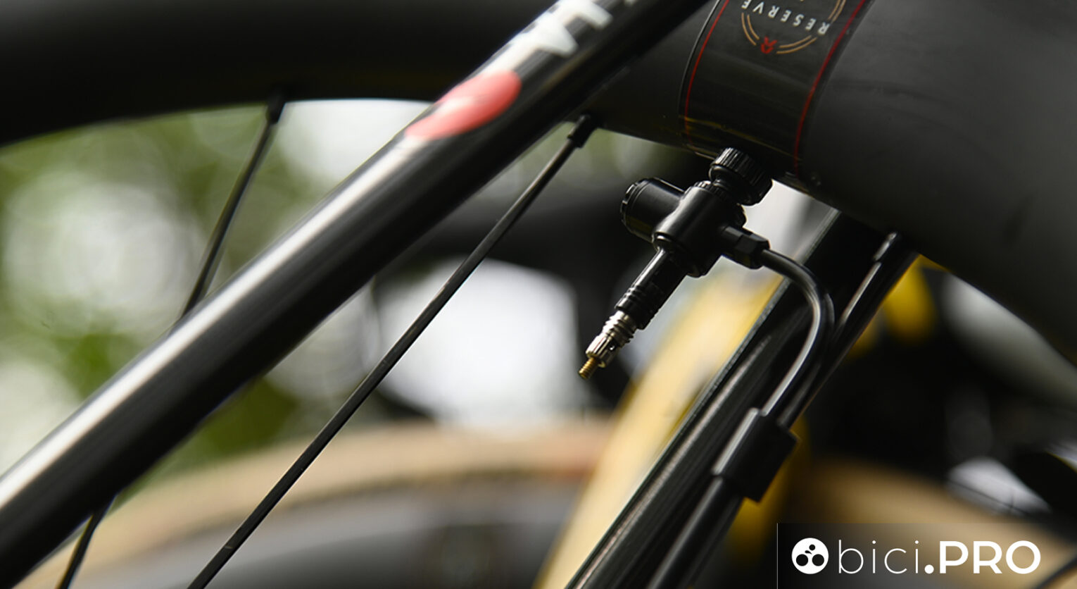 Il sistema, in sintesi, si basa su una pompa a bassa tensione comandata da pulsantini sul manubrio e interfacciata con il computer della bici. Si impostano i valori di pressione prima del via, poi con un pulsante si sgonfiano le ruote, con l’altro si rigonfiano. Il funzionamento è assicurato dal movimento della ruota.