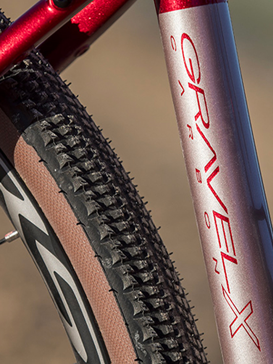 La stabilità è un’altra caratteristica imprescindibile di questa GravelX. Una bici con indole definita che vuole trasmettere sicurezza al ciclista. Le coperture con uno sviluppo del battistrada che arriva a 42mm, garantiscono la resistenza sulla ghiaia e sono sufficientemente veloci per la percorrenza su strada. Due anime in una per spaziare verso nuovi orizzonti del gravel.
