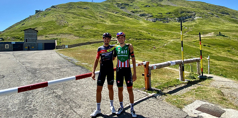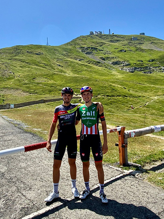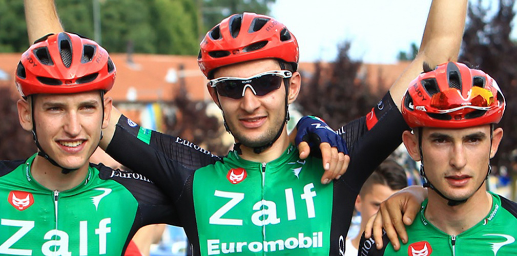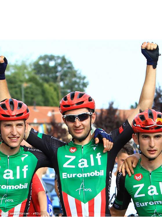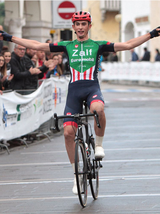 Gregorio Ferri nei “dilettanti” ha vinto 5 gare tutte con la Zalf Gregorio Ferri (a sinistra) con suo fratello Edoardo Gregorio Ferri (a destra) e suo fratello Edoardo abbracciano Messieri