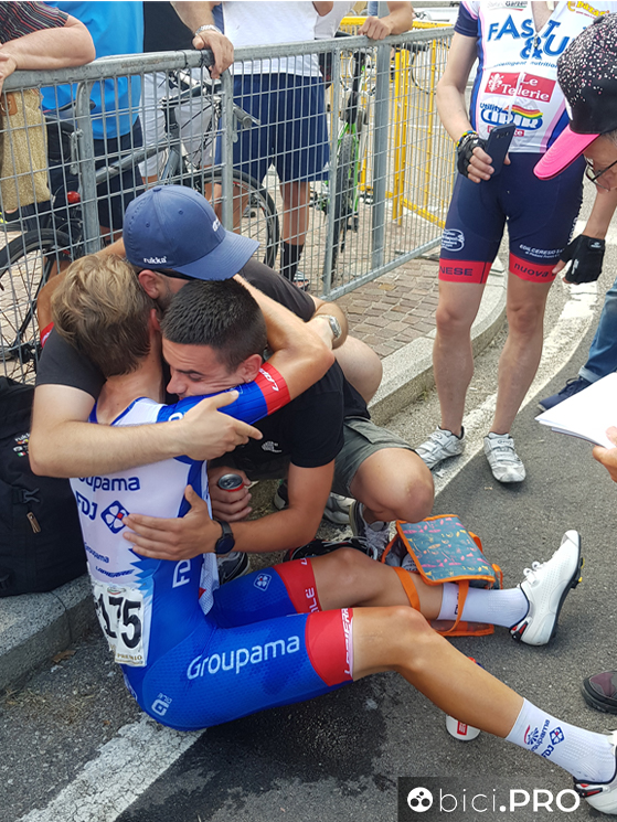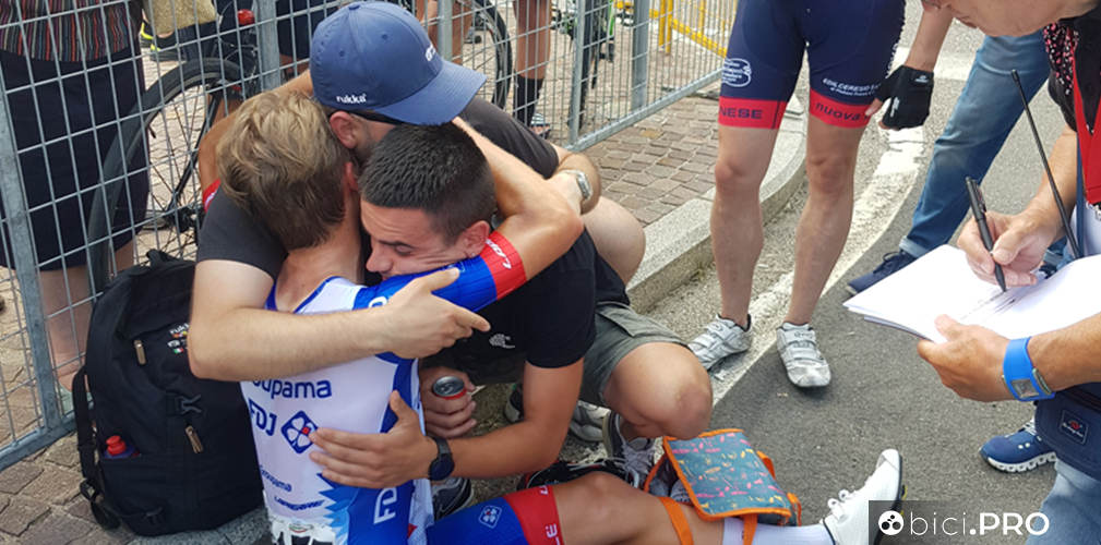 Al Tour del 2016 una sera noi della Katusha capitammo in hotel insieme all’allora FDJ. Marc Madiot, il team manager della FDJ, mi chiese di incontrarlo. Eravamo io, lui e il fratello di Pinot, che lo aiutava con l’inglese. Madiot mi fece una foto e la mandò ad Arnaud, scrivendogli: “Vedi che non ti sto prendendo in giro. Ho preso Guarnieri”. Démare non ci credeva, pensava fosse impossibile che fossi davvero io ad arrivare nel team. All’epoca, per un corridore non francese entrare in una squadra francese non era affatto comune. Rimase sorpreso, ma mi stimava molto. Da lì nacque la fiducia: mi lasciò organizzare tutto. Il primo anno c’era anche Cimolai, che conoscevo da bambino, e questo rese tutto più semplice. Già in Katusha mi occupavo del treno, quindi portai lo stesso metodo nella nuova squadra. E la prima gara insieme fu… memorabile.