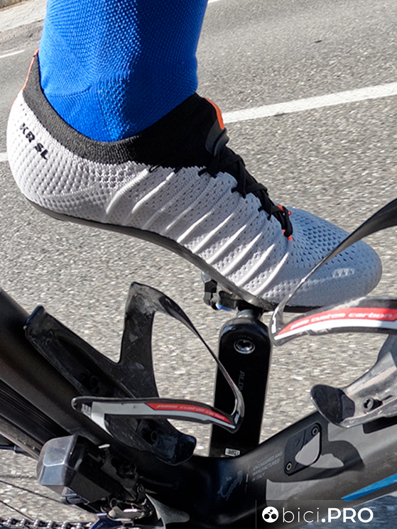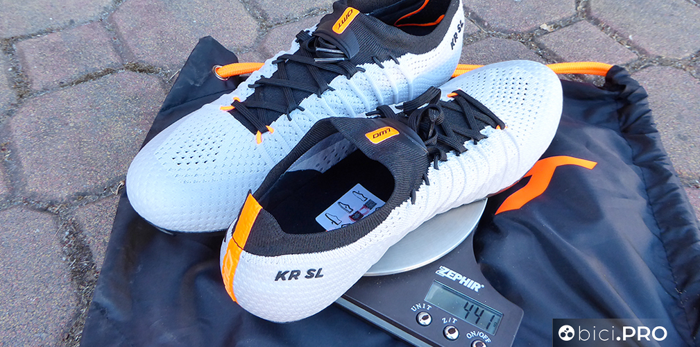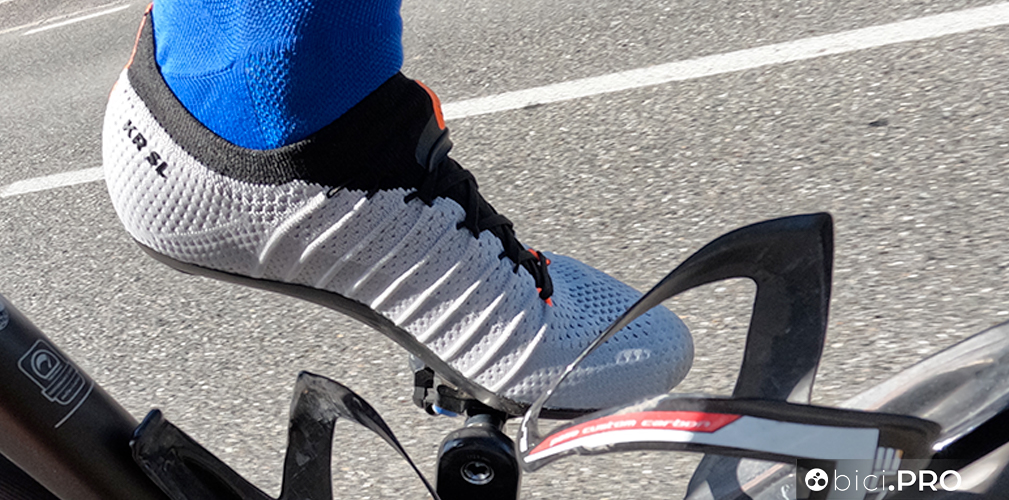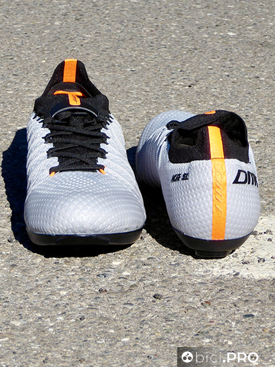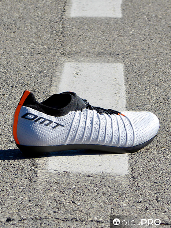 Tanto è leggera e morbida, quanto è forte e piacevole da indossare questa DMT KR SL. E’ una calzatura “da scalatore”, perché invita a spingere sulla parte anteriore, quando si sta in piedi sui pedali per diversi minuti e quando si prediligono le variazioni di ritmo agli scatti veri e propri. La tomaia in tessuto Knit permette al piede di mantenere la sua forma; è il tessuto che si adatta all’estremità corporea e la ventilazione costante è un vantaggio non da poco.