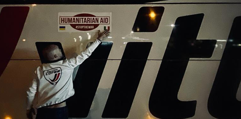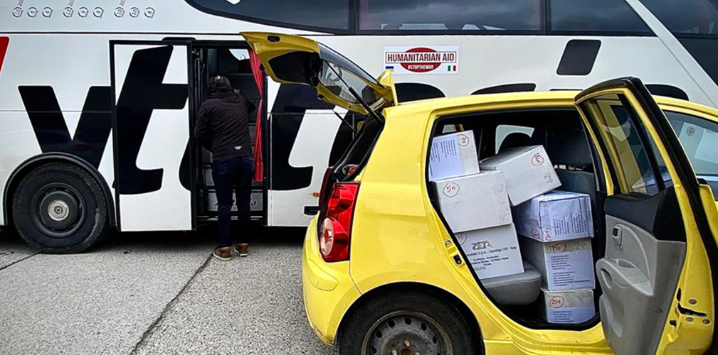 L’adesivo dice che il pullman trasporta aiuti umanitari: per passare la frontiera è necessarioL’adesivo dice che il pullman trasporta aiuti umanitari: per passare la frontiera è necessario
