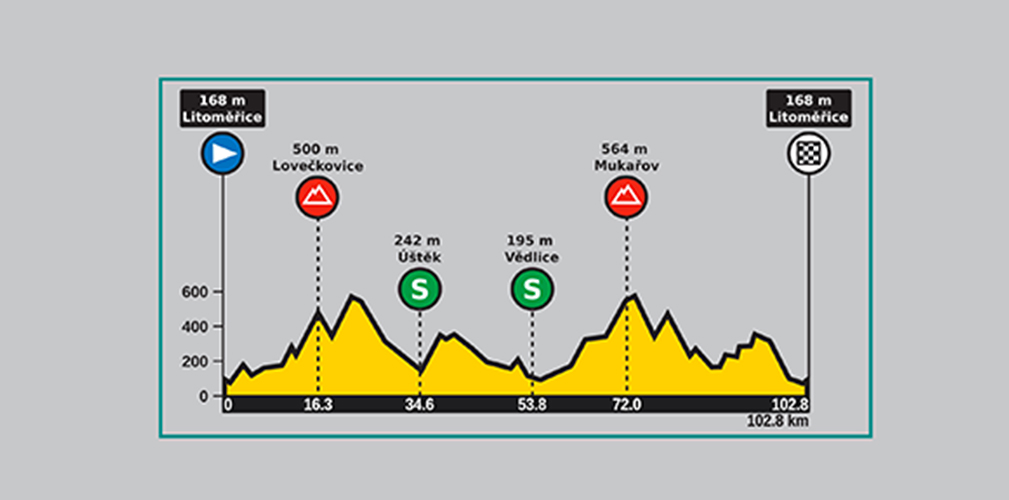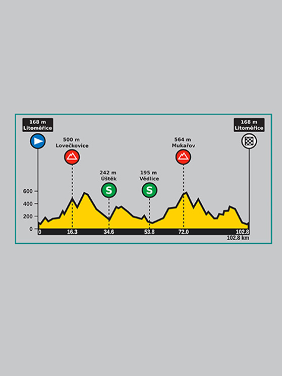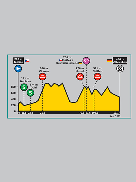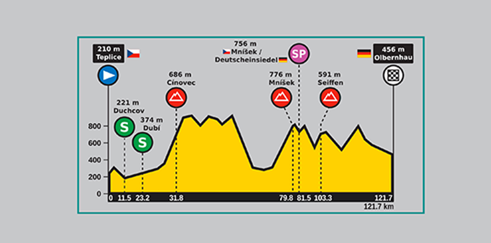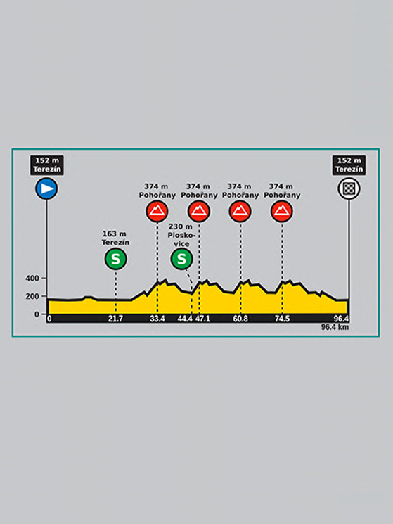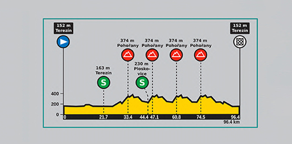 Prima tappa da Litomence a Litomence: 102,8 chilometri La 1ª semitappa del secondo giorno è la crono di Trebenice di 11,2 chilometri La seconda semitappa invece, da Steti a Steti, è più nervosa e misura 57 chilometri Si fa sul serio con i 121,7 chilometri da Teplice a Olbernhau: è il tappone Quarta e ultima tappa, 96,4 chilometri, da Terezin a Terezin. Totale della Course di 389,1 chilometri
