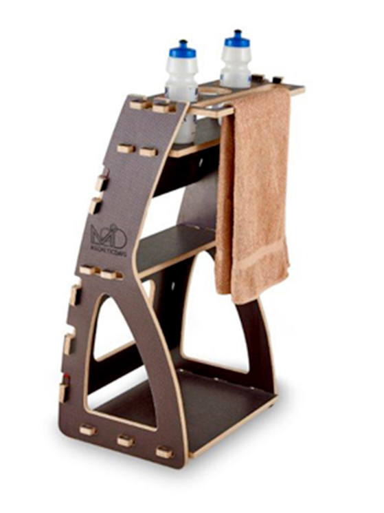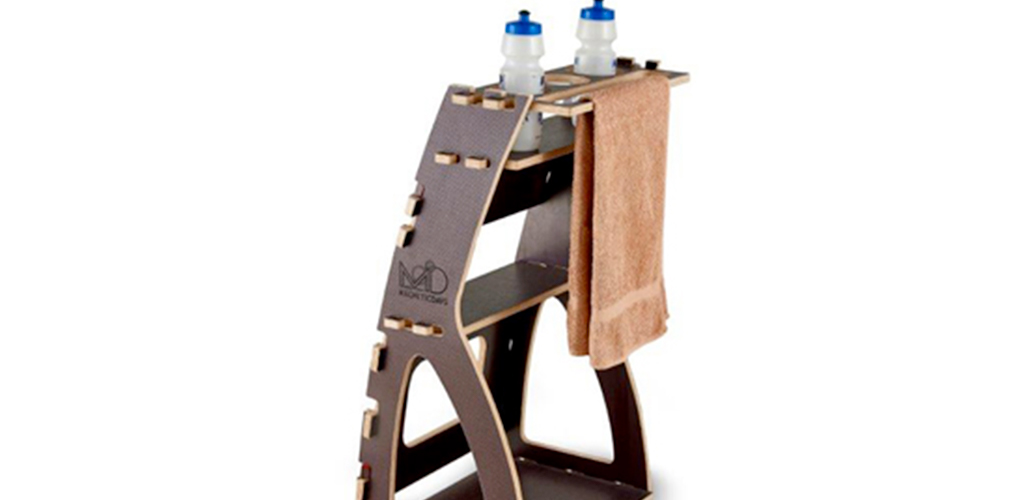 E’ una postazione multifunzione, una sorta di scrivania dove mettere il pc e moto altro. Il suo disegno è in linea con quello del porta borraccia e porta asciugamano, ma con l’aggiunta delle superficie anti-scivolo per il pc. Il piano è regolabile ed è dotato dei fori passacavo. La mensola nel mezzo diventa utile per appoggiare altri accessori per l’allenamento indoor. Questo e i componenti elencati in precedenza, in legno di betulla sono particolarmente resistenti all’acqua, allo sporco, all’usura e ai danni esterni, oltre ad essere facilmente lavabili.