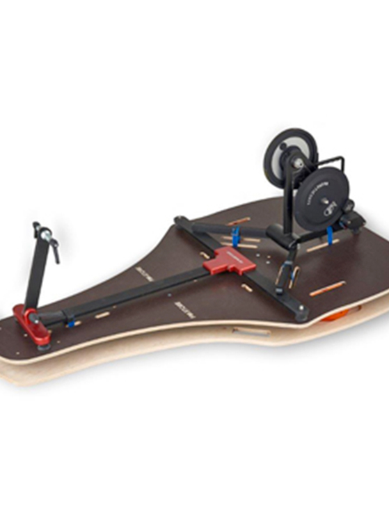 E’ un componente realizzato su misura per essere il naturale alloggio del Jarvis e del Jarvis Roll Bar, ovvero il telaio che stabilizza l’home trainer. L’obiettivo della pedana è quello di rendere ancor più reale l’allenamento, in particolar modo quando si vanno a simulare le uscite di sella e le accelerazioni in piedi sui pedali. E’ composta da due pannelli in legno di betulla, dallo spessore di 15 millimetri ciascuno. I due pannelli sono collegati tra loro da 5 ammortizzatori veri e propri, che smorzano le vibrazioni e assecondano i movimenti. Nella parte superiore ci sono una serie di asole d’ingaggio che permettono il montaggio del solo Jarvis, oppure del telaio stabilizzante nella sua completezza.
