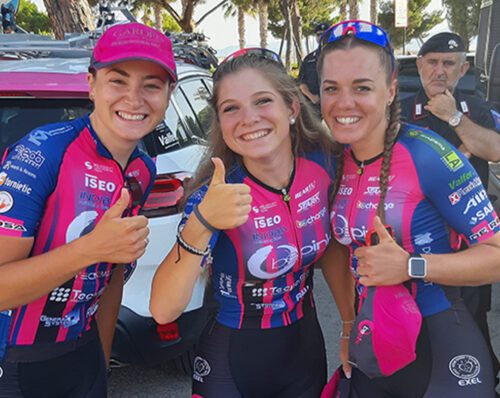 Il confine naturale delle Alpi tra Italia e Francia è quello che separa geograficamente due compagne di squadra della BePink. Ed anche quello che idealmente le unisce per le loro propensioni da scalatrici. Da un versante Matilde Vitillo, classe 2001 astigiana di Frinco. Dall’altro Jade Teolis, vent’anni compiuti lo scorso 12 gennaio di Lione. La piemontese è alla seconda stagione nel team di Walter Zini, la francese è arrivata quest’anno dall’A.R. Monex Women’s Pro Cycling. Entrambe vogliono farsi notare quando la strada sale. Prima però sanno che avranno compiti da svolgere per completare il loro processo di crescita. E intanto in Spagna si è cominciato a correre.