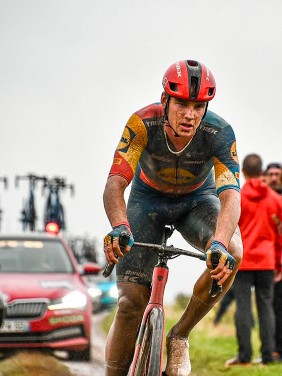 Parlo dei miei. Da un po’ abbiamo iniziato a dirgli: «Ragazzi, il rischio deve essere controllato. Nel senso che tra avervi fuori per tre mesi e fare secondo, fate secondo!». L’investimento che faccio su Ayuso, Ciccone, Milan, Skjelmose o Pedersen non è banale. Certo, per l’amor di Dio, se devi rischiare per la volata che vale la vittoria, allora rischia. Però se devi cadere nella curva a 70 chilometri dall’arrivo e stai fuori un mese, allora no. Devono frenare, perché il valore dell’atleta è talmente elevato che la sommatoria la fai a fine stagione, non sulla singola gara. Se devi vincere il Fiandre è una cosa, però non dirò mai a un corridore di rischiare l’osso del collo ai meno 20 dall’arrivo perché dobbiamo posizionarci bene in volata al Tour du Poitou-Charentes. Siamo tutti consapevoli che le cadute fanno male e secondo me la discussione dovrebbe essere molto più scientifica e analizzata in dettaglio.