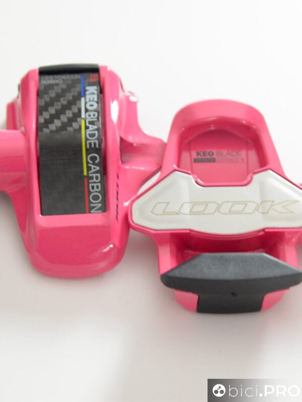 Una delle caratteristiche tecniche principali è l’aumento della superficie di appoggio, che nel nuovo Blade Carbon si amplia a 705 millimetri quadrati (in precedenza era 700). Il corpo del pedale è in carbonio. La tacchetta appoggia completamente sull’area superiore del pedale, con dei vantaggi tangibili sulla ripartizione delle masse durante le fasi di spinta e trazione. Le tacchette Look Keonon sono cambiate.