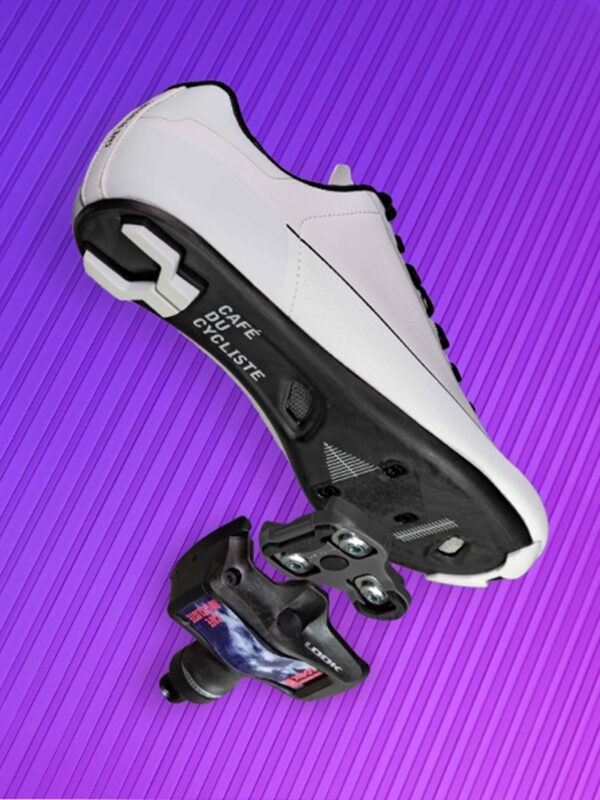 La tecnologia di supporto del tallone FishGrid, la soletta Solestar e le suole in carbonio di Café du Cycliste sono un complemento ad alte prestazioni per i pedali Keo Blade Carbon Ceramic di Look.