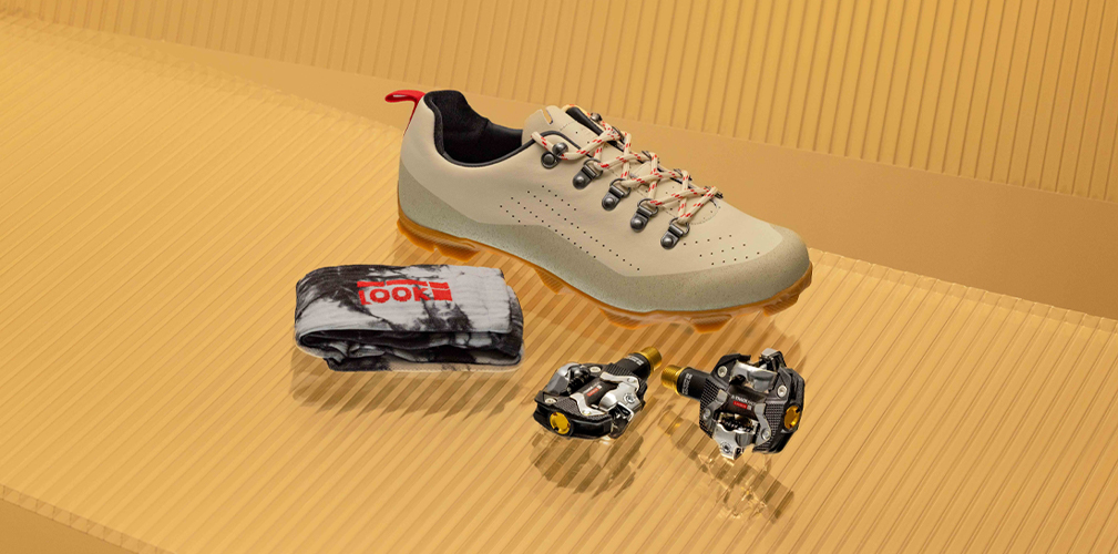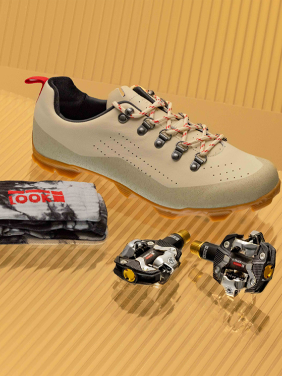 Anche per il settore gravel è stato realizzato un kit ad hoc. La combinazione tra le scarpe da gravel con suola in carbonio e alta aderenza di Café du Cycliste e la stabilità dei pedali X-Track Race Carbon Ti di Look offre un equilibrio di potenza e controllo su tutti i terreni, mentre l’esclusivo motivo tie-dye bianco e grigio garantisce un look di spicco.