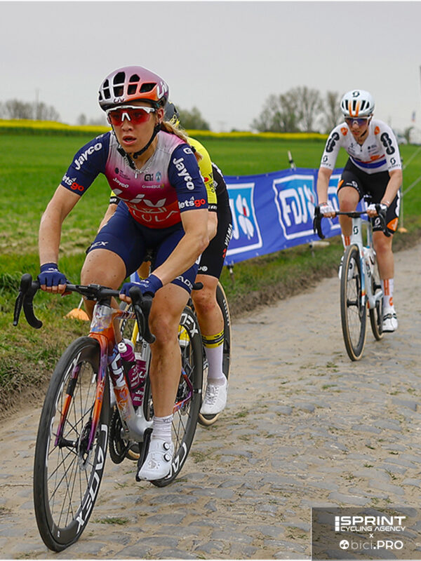 E io, consapevole che sia adatta a quelle corse, le ho dato qualche consiglio. Ero consapevole che non avessimo una squadra per chiudere sugli attacchi delle altre, soprattutto alla Roubaix, e che lei non potesse seguirle tutte. Al Fiandre siamo andati bene e tutto sommato anche alla Roubaix finché le gambe hanno tenuto.