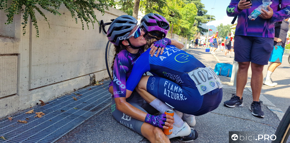 Testa bassa sul manubrio, Monica Trinca Colonel cerca di riacquistare le forze dopo una gara intensa Letizia Paternoster (ieri in corsa con le Fiamme Azzurre) arriva al traguardo e corre ad abbracciare la sua compagna di squadra Testa bassa sul manubrio, Monica Trinca Colonel cerca di riacquistare le forze dopo una gara intensa Letizia Paternoster (ieri in corsa con le Fiamme Azzurre) arriva al traguardo e corre ad abbracciare la sua compagna di squadra