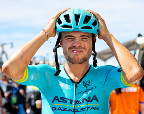 Il casco Limar è una via di mezzo fra coda tronca e lunga (foto Astana Qazaqstan)