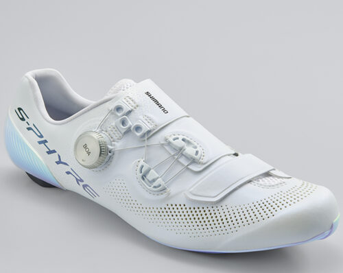 Quella rosa vinta da Simon Yates e quella gialla indossata da Pauline Ferrand-Prevot sul podio di Châtel ad inizio agosto. L’estetica è molto curata e minimal, come nello stile di Nimbl. La base rimane bianca, ma impreziosita da una colorazione (rosa, gialla o blu) che parte dal tacco e poi sfuma a metà della linguetta. La livrea celebrativa è completata dalla scritta Nimbl con la stessa colorazione sul lato esterno della scritta.