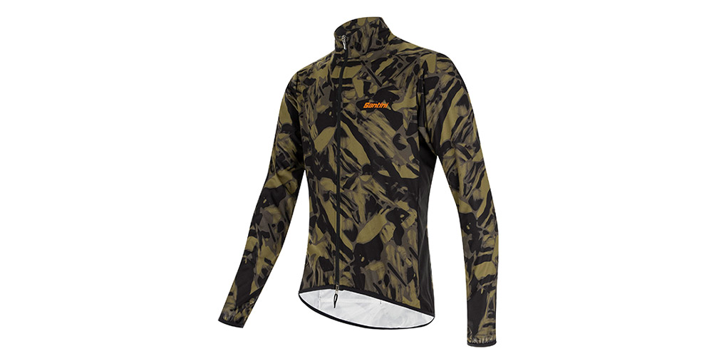 Santini propone anche una giacca e uno smanicato antivento. Entrambi sono realizzati con un design camouflage che si abbina agli altri capi della linea Gravel, ed inoltre, sono stati prodotti con una membrana leggerissima che protegge dal vento e allo stesso tempo è altamente traspirante. Una bella qualità di questo materiale è che i capi si possono richiudere nella loro stessa tasca e quindi sono facilmente trasportabili. Lo smanicato e la giacca antivento sono disponibili nei colori: verde militare e grigio.