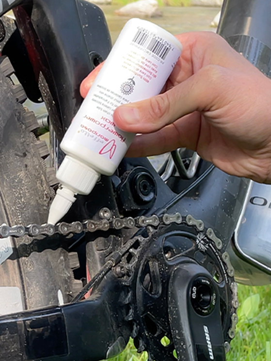 A questo punto basta estrarla, lasciarla ad asciugare per circa 30 minuti e poi rimontarla sulla bici. La confezione da 600 grammi permette la lubrificazione di circa 25 catene.
