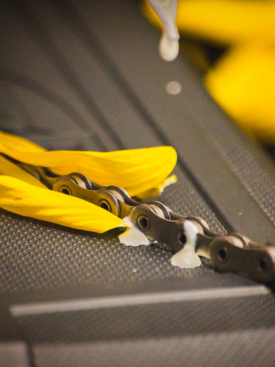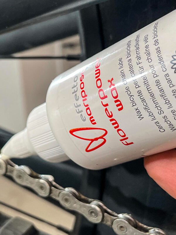 «L’idea per il Flowerpower Wax è nata in modo un po’ stravagante. In un mercato affollato di lubrificanti, ognuno caratterizzato da specifici additivi per differenziarli agli occhi dei consumatori, ho pensato che si poteva prendere la direzione opposta: evitare solfuri e sostanze fluorurate miracolose, grafene e particelle ceramiche… e orientarsi verso una formula con cere di origine vegetale. Con l’occasione abbiamo provato cere che mai erano state testate per l’uso ciclistico, con risultati di assoluto valore. La cera di semi di girasole è meccanicamente eccellente e resiste bene all’acqua. I test sul campo prima e poi quelli di laboratorio ne hanno confermato la validità».