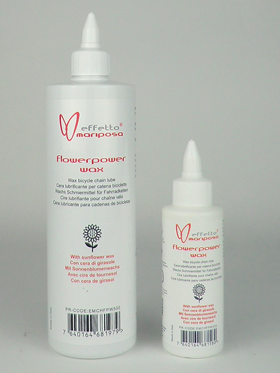 Il portfolio di Effetto Mariposa è davvero ampio e offre diversi prodotti specifici, per numerose applicazioni. In questo ventaglio di possibilità mancava un lubrificante di altissima qualità. Ecco il Flowerpower Wax in forma liquida, specifico per la catena della bicicletta.