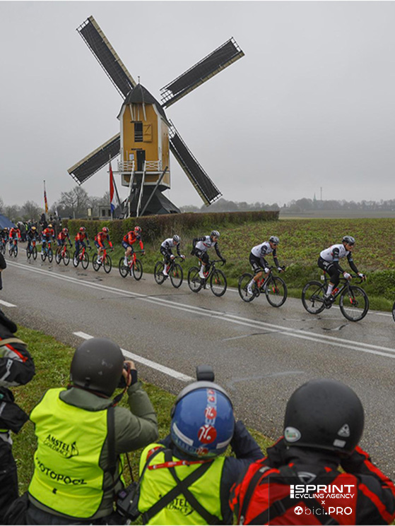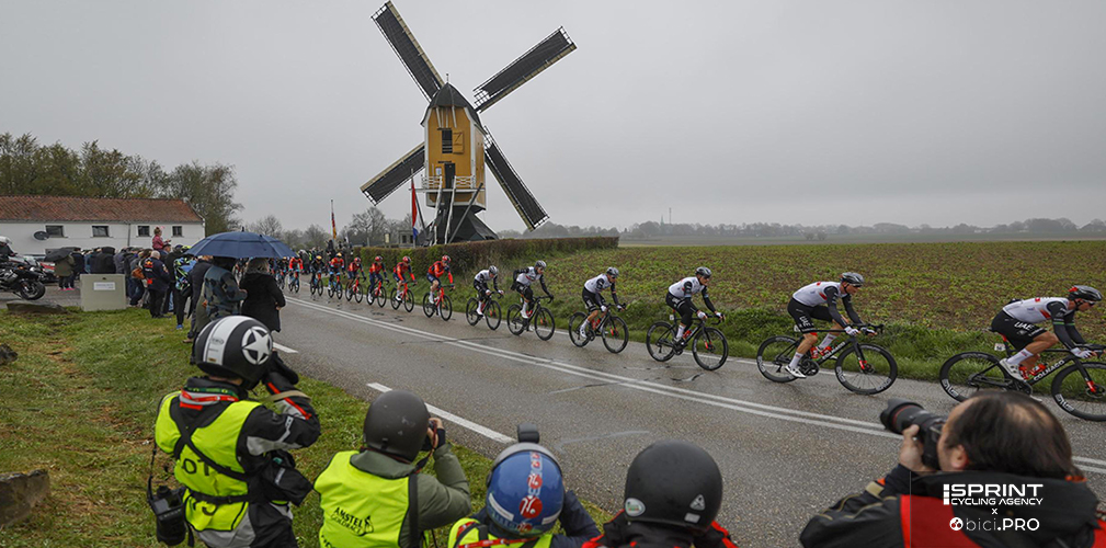 Non piove e fa anche più caldo di ieri. Nel corso della gara esce un timido sole. In questi ampi spazi, quando escono dai paesi, il gruppo è allungato e ogni drappello vede quello che lo precede. Sembrano le immagini della Parigi-Roubaix.