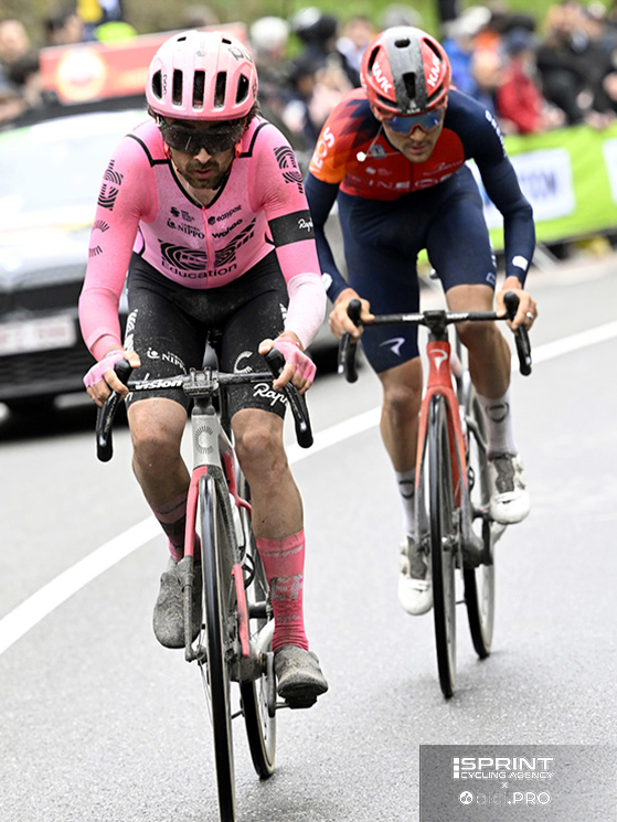 Vermeersch, Biesterbos, Politt (compagno di Vermeersch alla UAE Emirates) e Van Tricht guadagnano una manciata di secondi. E lì restano a lungo. Solo le “trenate” di Mohoric per un po’ riaccendono la corsa. Davanti però Vermeersch va che è un piacere: se li toglie tutti di ruota.