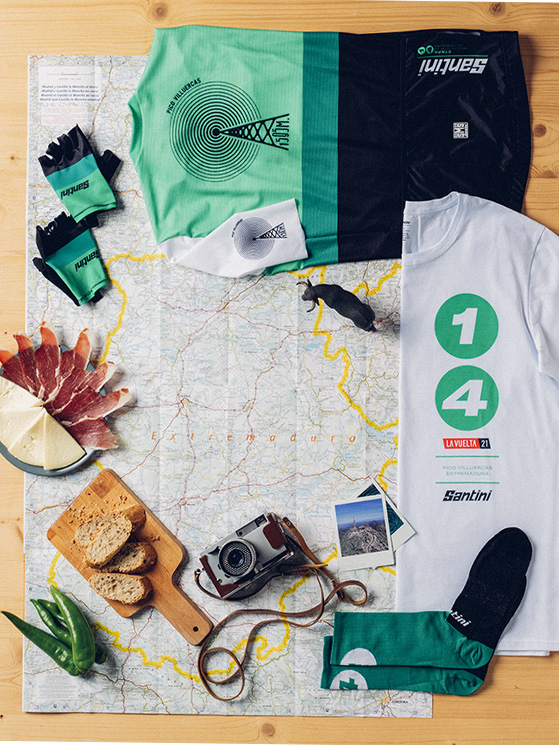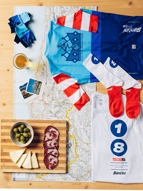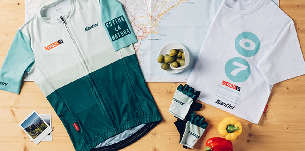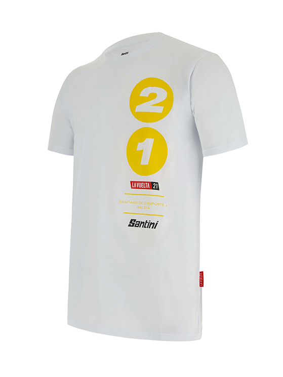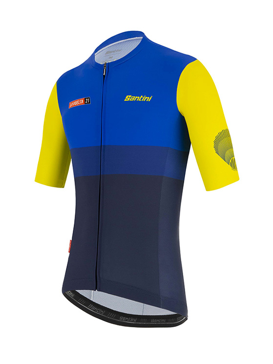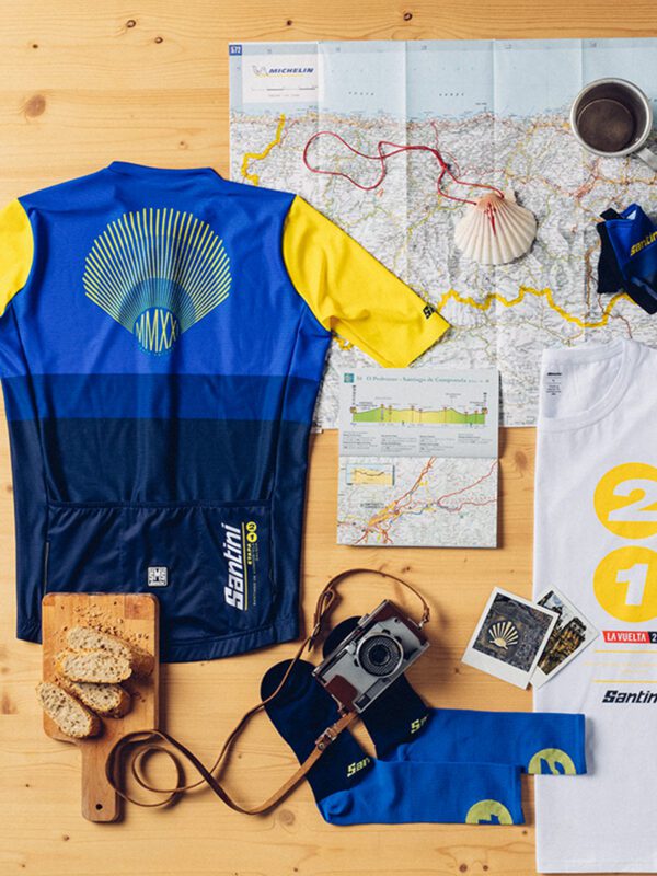 Vuelta 2021 che terminerà a Santiago de Compostela, maglia blu e azzurra (nella foto di apertura), colori della bandiera galiziana. Sulla schiena e sulle maniche ci sarà una conchiglia, simbolo di Santiago, il santo patrono della Galizia e della Spagna, a cui è dedicato anche uno dei sentieri del cammino spirituale più famoso al mondo. 21 sarà, inoltre, il numero su quest’ultimo kit che completa questa speciale collezione proposta da Santini.