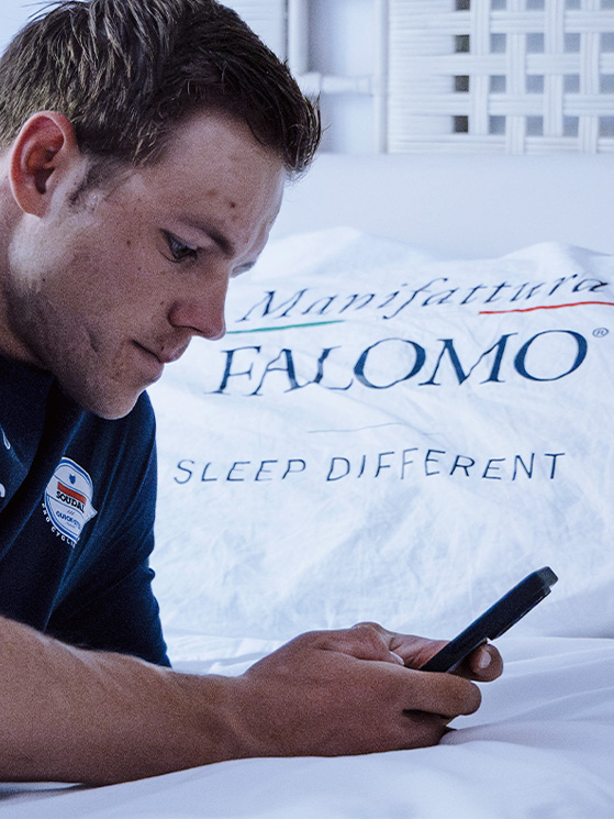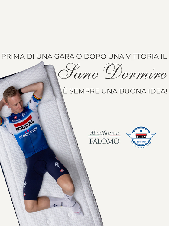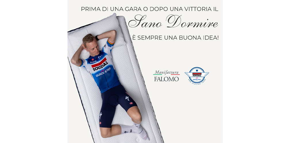 CESANO MADERNO – Recupero, prevenzione degli infortuni, lucidità tattica: in una corsa a tappe come il Giro d’Italia o il Tour de France ogni notte di sonno vale watt ed energie che il cronometro restituisce il giorno dopo. Per questo il team Soudal-Quick Step viaggia con otto materassi modello Body Trainer firmati Manifattura Falomo, ognuno dedicato e personalizzato con il nome del corridore.