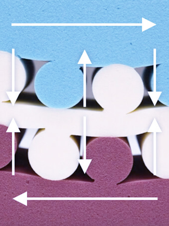 Hanno una struttura realizzata con schiume evolute dalle elevate performance, uno strato in Feel HD in superficie che accoglie senza compressioni e un rivestimento in tessuto Micro Tencel, che ottimizza la dispersione di umidità. La particolare struttura interna a rulli contrapposti asseconda i movimenti del corpo e accoglie in maniera progressiva e delicata la colonna vertebrale. Il risultato è un supporto progressivo: accogliente sulle zone di carico, sostenuto sulla colonna.