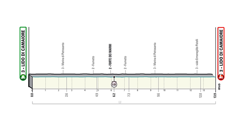 Andando nel dettaglio, la crono di apertura ricorda il percorso di quella a squadre a Camaiore, con la differenza del giro di boa collocato prima. Crono totalmente piatta e media stellare. Non a caso fra i cronman al via spiccano Ganna, Asgreen, Evenepoel, Pogacar, Affini e Vingegaard.