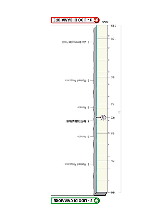 | 1ª tappa | 7 marzo | cronometro individuale: Lido di Camaiore-Lido di Camaiore | 13,9 |