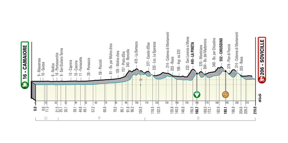 | 2ª tappa | 8 marzo | Camaiore-Sovicille | 219 |