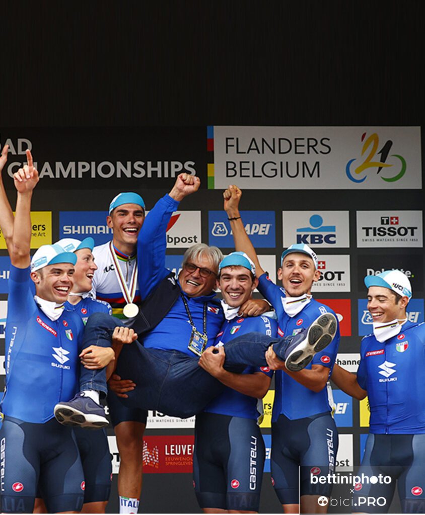 Avevamo impostato l’europeo in un certo modo. Non avendo la possibilità di comunicare, fatta la riunione e date le dritte, poi sono loro che devono gestire, capire come muoversi e cosa fare. Quando nel finale Lorenzo si è accorto di non avere la giornata migliore, si è messo al lavoro per cercare di prendere il bronzo di Gualdi (che ha dovuto accontentarsi del quarto posto, ndr) e questo mi ha fatto molto molto piacere. Vuol dire che ha riconosciuto il lavoro che i suoi compagni hanno fatto per lui all’Avenir e al mondiale. Senza dire nulla si è messo a disposizione, con la maglia da campione del mondo addosso: non è da tutti.