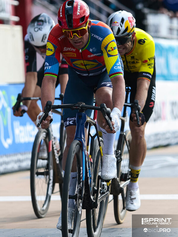 Sappiamo invece che Jonathan aveva la corona da 54 denti, quella vista già a Dunkerque. E’ anche vero che con il gruppo SRAM possono usare il 10. Non crediamo abbia fatto lo sprint col 10, altrimenti sarebbe stato più “duro” di Merlier col 56×11. A meno che anche il belga avesse il pignone da 11. Ma l’agilità è il marchio di fabbrica del friulano, che viene dalle cadenze della pista.