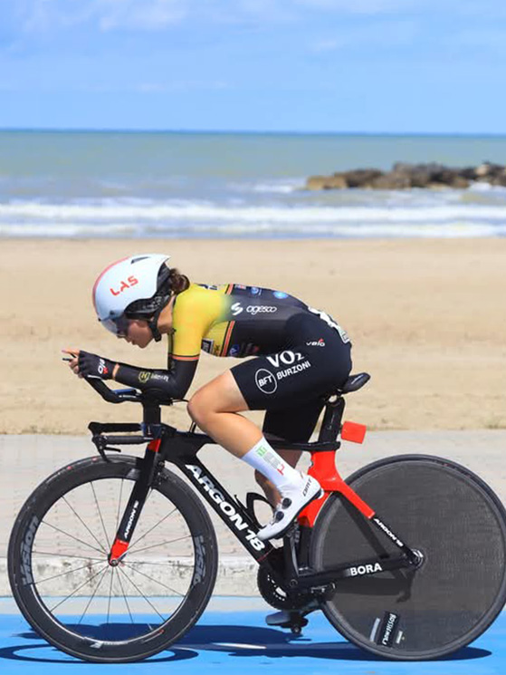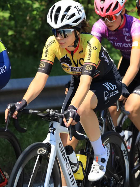 La cosa che colpisce, parlando con Matilde, è la consapevolezza di sé, inconsueta per una ragazza della sua età: «Ho iniziato da G5 seguendo un po’ le orme di famiglia, mio padre è stato professionista dal 1985 al ’90. Sono cresciuta nel Gs Luc Bovolone dove ho conquistato nel 2022 il titolo italiano esordienti 2° anno. Da quest’anno sono nella BFT Burzoni. Sono adatta ai percorsi ondulati, per natura mi piacciono i tracciati difficili dove poter attaccare. Mi alleno nella zona del veronese ma io sono nella parte della Pianura Padana, così per allenarmi spesso mi spingo a Soave e affronto la salita di Boscochiesanuova».