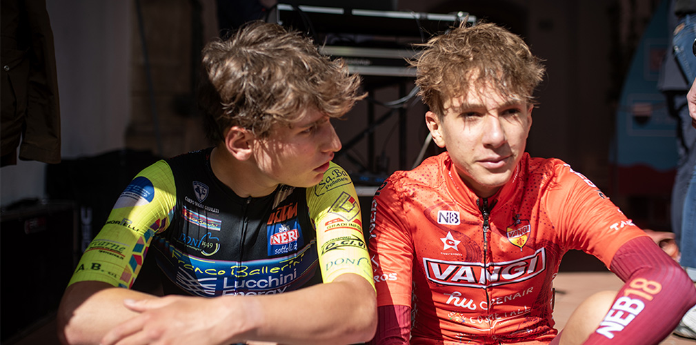 Più che dire cosa accomuni Mattia Proietti Gagliardoni, oggi al Team Franco Ballerini, e Giulio Pellizzari, professionista della Red Bull–Bora, sarebbe meglio dire chi. E questo “chi” è Massimiliano Gentili, l’uomo che li ha seguiti sin da quando erano bambini e hanno iniziato a fare sul serio. Allievi prima, juniores poi… e professionisti adesso. Perché Gentili, in qualche modo, per loro c’è sempre.