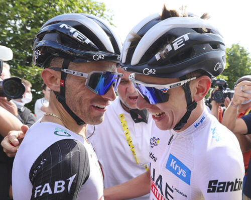 Il Tour de France non è solo l’evento ciclistico più importante del mondo, capace per tre settimane di catalizzare l’attenzione di tutti gli appassionati di ciclismo. E’ anche l’occasione per team e sponsor tecnici di stringere nuovi accordi oppure di prolungare quelli già esistenti. E’ questo il caso dell’accordo fra MET Helmets e UAE Team Emirates. In occasione del secondo giorno di riposo, mentre il Tour entrava nella sua settimana decisiva, quella del trionfo di Vingegaard, MET Helmets ha annunciato il prolungamento fino al 2027 della propria partnership tecnica con il team che ha in Pogacar la sua punta di diamante (nella foto di apertura lo sloveno con Majka dopo la vittoria a Le Markstein).