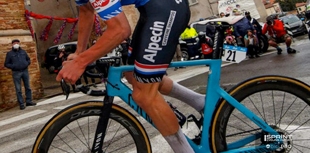 Non solo: nelle ultime uscite, Van Der Poel ha sempre utilizzato le tacchette blu per i pedali Shimano, quelle intermedie che prevedono un minimo di gioco laterale. In passato, per le calzature road, il corridore era solito ad usare quelle di colore rosse (fisse).