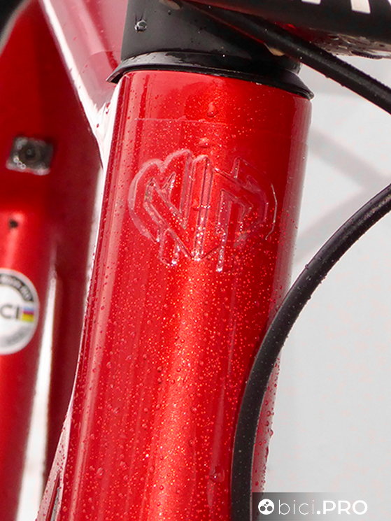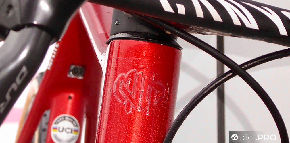 La bicicletta di Van Der Poel si distingue, rispetto alle altre dei compagni di squadra, per la colorazione rosso/amaranto. Inoltre sulla tubazione dello sterzo è riportato il logo del campione olandese, mutuando la scelta vista sulle bici da ciclocross.