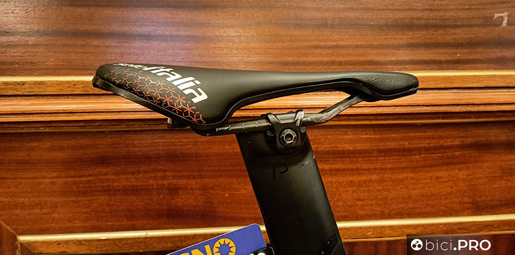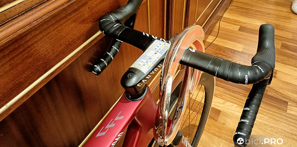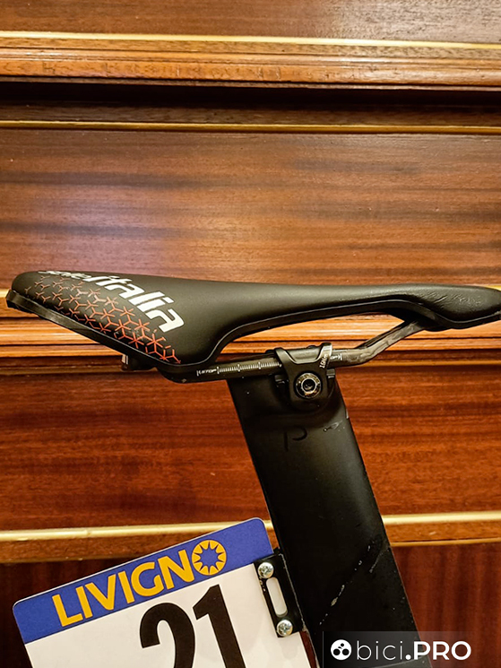 Non è la prima volta che notiamo un arretramento maggiore della sella (Selle Italia Flite Boost Superflow), soluzione adottata diverse volte dopo la caduta in mtb alle Olimpiadi. Cosa può significare: un comfort maggiore e soprattutto uno “scarico” aumentato per la zona lombare, anche in considerazione dei tanti chilometri della Sanremo. Nonostante questo, sempre facendo un confronto con il passato, utilizza un manubrio con stem negativo.
