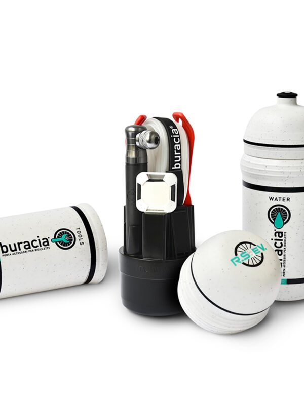 Il ciclista ama definirla la “falsa borraccia” (ma Buracia produce anche delle borracce di alta qualità) un simbolo della bicicletta e del ciclismo. Al suo interno il ciclista mette di tutto, talvolta in maniera ordinata e ragionata, in altre occasioni senza una logica precisa. Buracia è un contenitore che ha l’obiettivo di tenere tutto stoccato in modo preciso, per facilitare l’intervento, quando è necessario, per azzerare i rumori e gli scricchiolii dei pezzi che si toccano. Buracia è sinonimo e garanzia di avere tutto quello che serve in un posto solo.