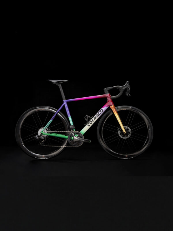 Durante il processo di creazione dei modelli limited edition di Colnago vengono realizzate diverse combinazioni di colori. Queste vengono testate, talvolta anche su modelli di telaio diversi, per capire in modo concreto quale potrà essere il risultato finale. Questi telai unici, chiamati “Prove Colori”, sono l’unico modo per capire se il risultato creativo è quello previsto. Normalmente ciascun kit telaio viene poi venduto direttamente dall’azienda attraverso negoziazioni personali.