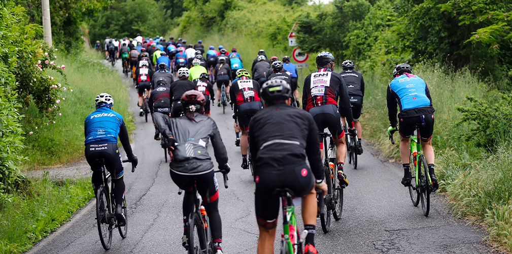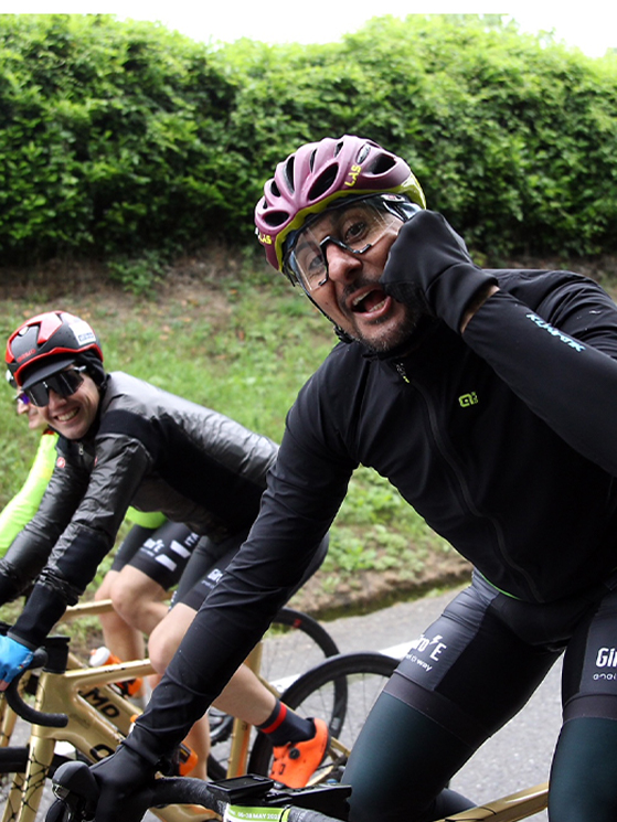 Si ritorna in pianura e cominciano le prove di regolarità, ovvero tratti cronometrati in cui l’obiettivo è quello di pedalare compatti coi propri compagni di team a una media predefinita. Il nostro capitano Lello ci guida alla grande e, tra un colpo di pedale e l’altro, le risate sono assicurate. Entrando a Serravalle Scrivia, cominciamo a vedere rosa dappertutto e gli abitanti ci applaudono, come per riscaldarsi in vista dei campioni che di lì a poco passeranno ben più lesti sulle stesse strade.