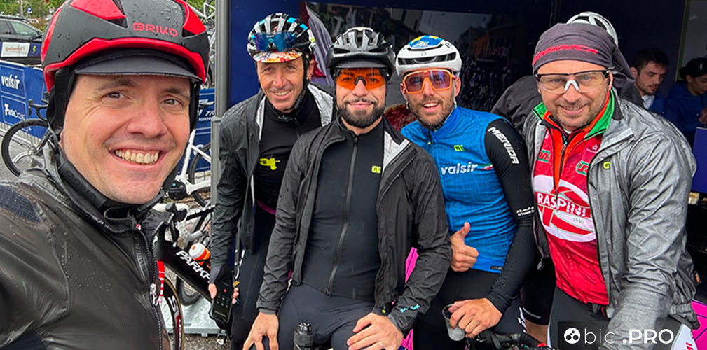 Uno squadrone, ma anche le altre formazioni del Giro-E non scherzano ed è bello ritrovare colleghi, amici, ma soprattutto tanti campioni del pedale, a partire dall’ultimo italiano capace di farci commuovere per una monumento tra fango e lacrime: Sonny Colbrelli. Stavolta, la festa gliela facciamo noi perché è anche il suo 33° compleanno e così a cantargli tanti auguri sono Andrea Tafi, Damiano Cunego, Sacha Modolo, Giovanni Visconti, Daniele Colli e Davide Cassani: alcuni dei protagonisti di questo Giro-E 2023.