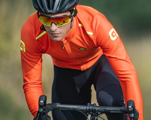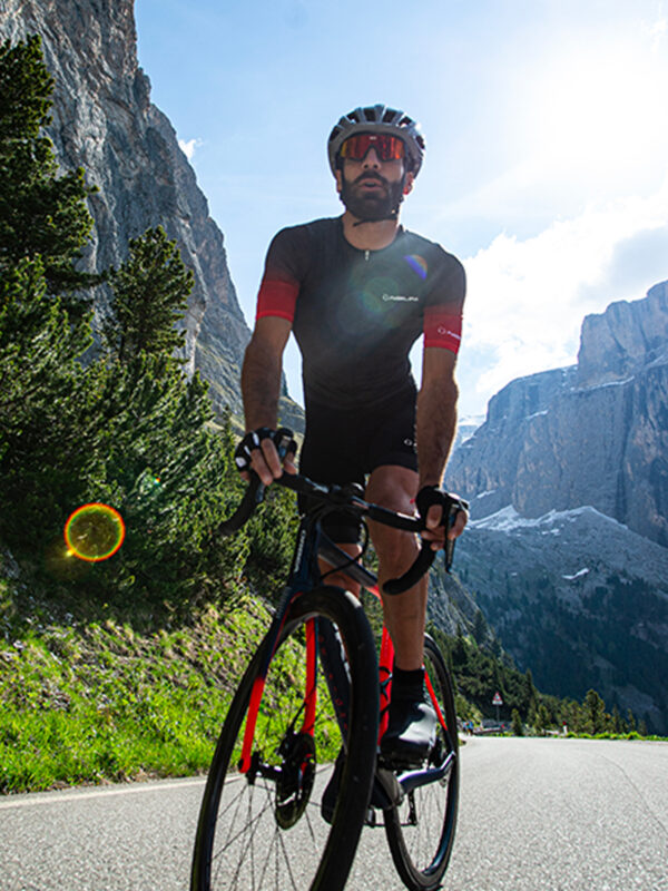 Fra le tante cose ci era stato raccontato di come gli atleti della formazione orange avessero dato il loro contributo nello sviluppo del Protection Kit Dyneema, un completo composto da una maglia ergonomica e da un pantaloncino, progettati appositamente per garantire una maggiore protezione in bici.